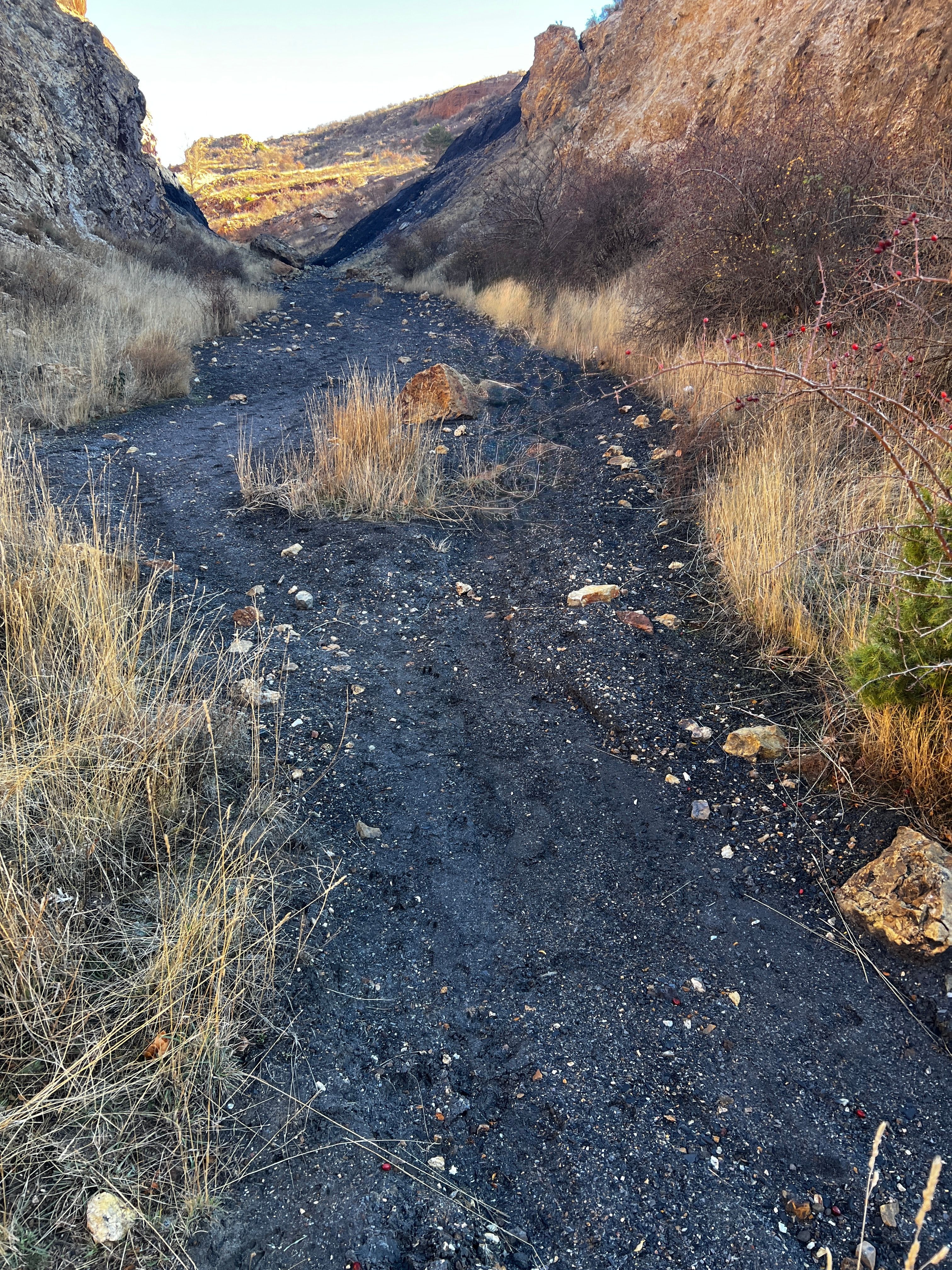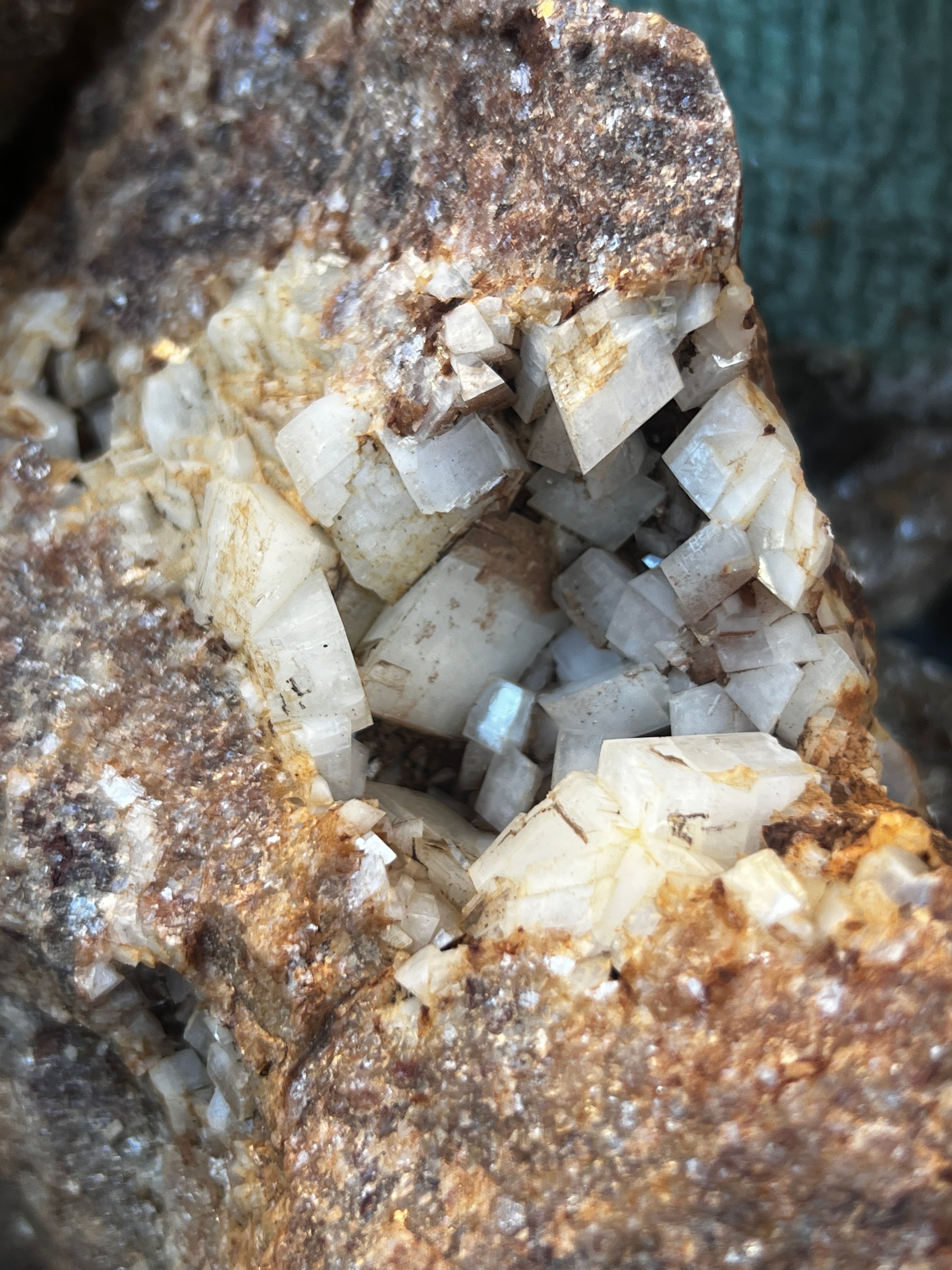 TAMBIEN ENORMES BLOQUES DE PIEDRA EN LA PARTE CENTRAL DEL SENDERO DONDE VEMOS MUESTRAS DE GRAN TAMAÑO DE CRISTALES DE DOLOMITA LIMONITIZADOS.